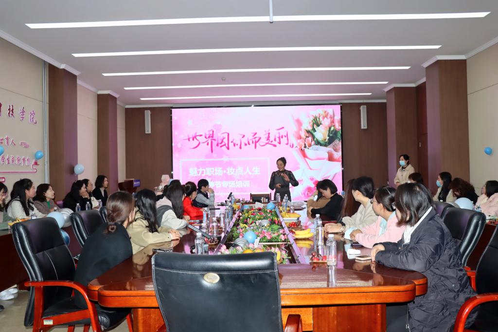 又一年“三八”国际劳动妇女节如期而至,为进一步提升女教职工职业形象,提升她们对美好生活的向往和自信心,3月7日下午,beat365英国官方网站教师发展中心举办妇女节妆容主题活动。本次活动邀请到了兰州美学达人教育视觉总监崔茹为大家讲解职场化妆技巧。
